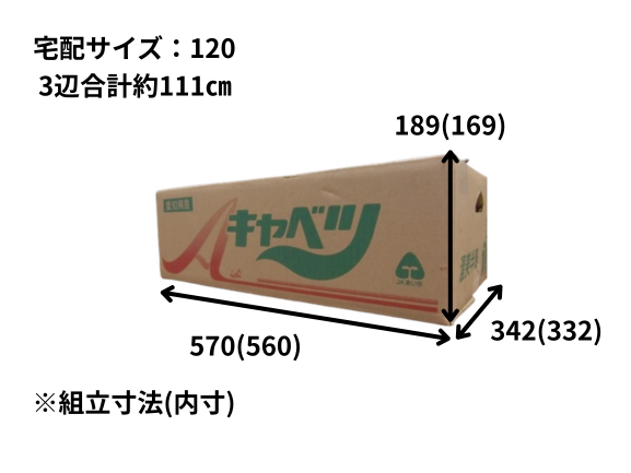 きゃべつ(キャベツ)10kg段ボール JA愛知みなみ ①外側・内側ともに防水仕様になっていない ②使用時に指に負担が、かかりにくい手掛け穴の形状 ③箱の長さ面に予冷穴が付いていない ④箱の底面に水抜き穴... 120サイズ 2026.02.28